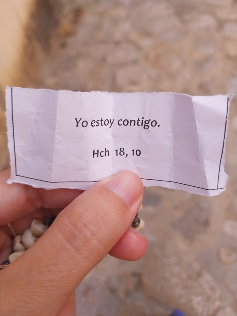 Y le dije a Jesús: «Perdón por estar buscando tus consuelos y pensar sólo en mí. Cuando abra el papelito, dime lo que te apetezca decirme; dime aquello que Tú necesites». ¡Y bendita Su bondad! Me quiso consolar con un «Yo estoy contigo» (Hch 18, 10), dando a entender que me perdonaba. Estaba yo feliz.